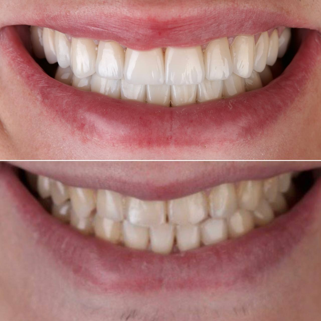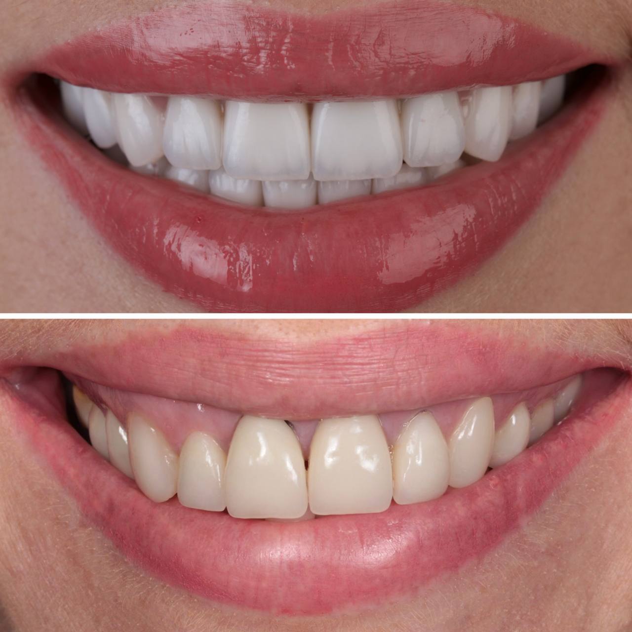 Несмотря на то, что современные методы позволяют осветлить эмаль зуба на несколько тонов, встречаются дефекты которые отбелить невозможно. Кроме того на винирах не образуются пятна, им не страшны пищевые красители, они не мутнеют и не обесцвечиваются.